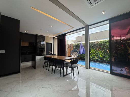 Casa térrea para LOCAÇÃO no Terra Vista, com 200 m², distribuídos em 3 quartos suítes, escritório, home, sala ampla com pé direito duplo e uma área gourmet aconchegante, bem equipada e integrada com espaçoso quintal, área verde e piscina. Em excelente localização no Condomínio, a casa oferece também: 3 Suítes, sendo 1 Master com closet Energia Solar instalada Closet Escritório 4 banheiros Living amplo com pé direito duplo e espaço gourmet equipado Móveis Planejados nos ambientes Ar-condicionado nos ambientes Piscina Aquecida Amplo quintal com jardim integrado e iluminação moderna 4 Vagas de garagem Às margens da Rodovia Washington Luís, o TerraVista Residence Club é um dos condomínios de melhor logística e acesso às principais avenidas e regiões de Rio Preto. Está a 2 km do Clube Monte Líbano e, pela 2ª portaria (fundos), também tem acesso direto à Mirassol e aos outros condomínios da cidade. Com casas de médio/ alto padrão construtivo é um empreendimento exclusivo, cuidadosamente planejado para garantir qualidade de vida aos seus moradores. A área de lazer é completa e atende a todos os gostos e idades: piscina adulto e infantil, deck molhado, academia, playground, brinquedoteca, quadras de tênis (saibro), quadra poliesportiva, campo de futebol, quadra de beach tênis, de vôlei de areia/ futevôlei, salão de festas, minimercado 24h, 4 quiosques com churrasqueiras, área verde, horta comunitária, reserva legal com lago, para prática de pesca esportiva. Ao entrar no condomínio, você será recebido por um belo jardim bem cuidado e uma portaria com segurança 24 horas. Para os seus convidados, há um estacionamento disponível, e para sua comodidade, há uma entrada de serviço separada. Além disso, o condomínio possui interfone em todas as casas, permitindo comunicação fácil entre os moradores e a portaria. Não perca a oportunidade de conhecer o Terra Vista e desfrutar de um estilo de vida tranquilo, seguro e completo em Mirassol. Observações: Consulte-nos sobre a disponibilidade e as informações do imóvel anunciado. Valores sujeitos à alteração sem aviso prévio.