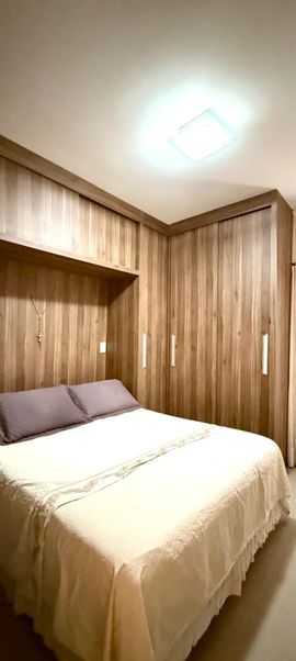 2 quartos, sendo 1suíte, Sala para 2 ambientes com sacada com vista permanente