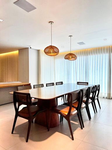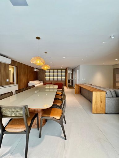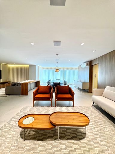Apartamento com elevador privativo, todo mobiliado, decoração, com 197 m² de excelente padrão construtivo, distribuídos em 3 quartos suítes (1 master), sala ampla, cozinha bem equipada com cooktop, coifa, geladeira, rica em armários, espaços amplos e bem iluminados para proporcionar uma experiência residencial única, ideal para quem valoriza o máximo em qualidade de vida..