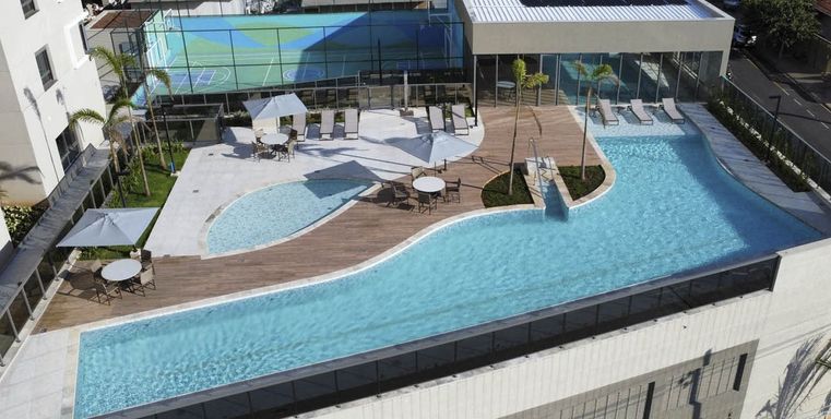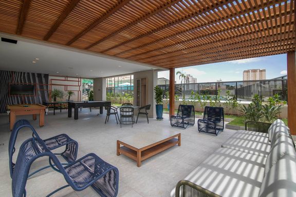 Com 24 áreas de convivência, projetadas e equipadas com requintes, design, tecnologia e funcionalidade: Garden espelho d‘água, lounge place, gourmet place, lavabos, brinquedoteca, administração, winebar, varanda esportiva, pergolado relax, relax place, fitness, quadra recretiva, piscina kids, piscina com raia, deck molhado, solarium, Piscina coberta e aquecida, vestiários piscinas, gourmet garden, apoio gourmet Garden, espelho d´água, garden square, pergolado e playground.