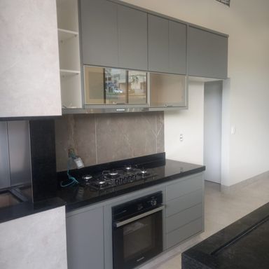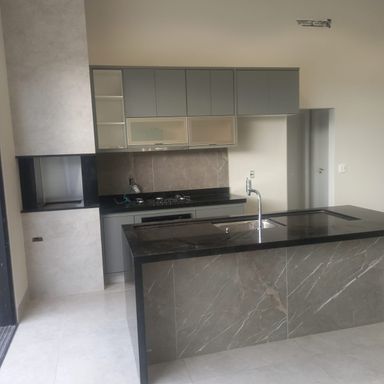 Casa em porcelanato, esquadrias em alumínio, portas internas laqueadas