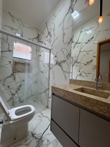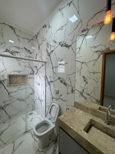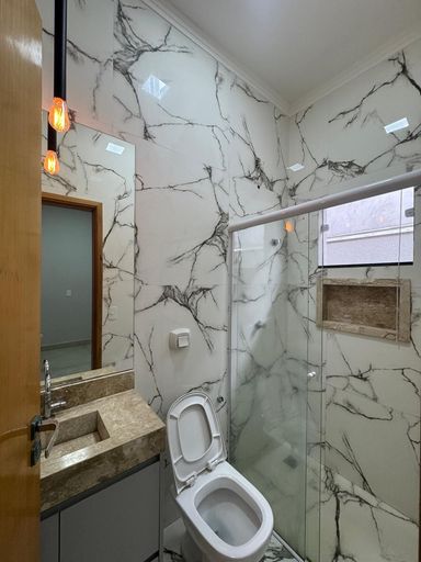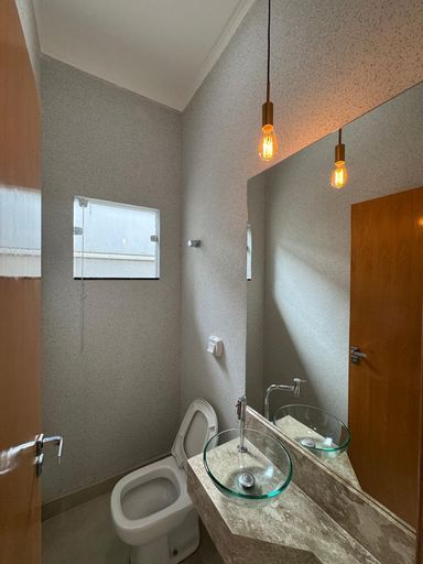 Casa nova à venda no Set Sul I, com 3 suítes, sala estar / tv, com pé direito de 4m e sanca de gesso, cozinha com cooktop, armários e churrasqueira, lavabo, lavanderia, piso porcelanato e rica em armários em todos os ambientes.