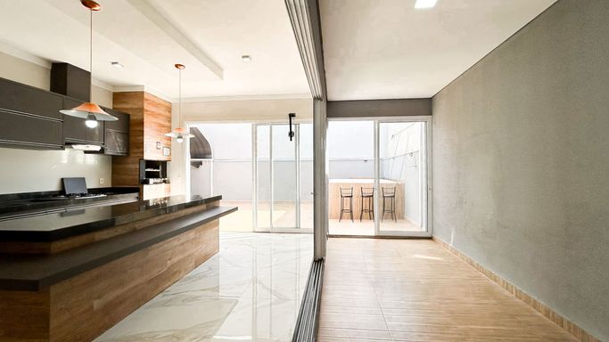 Casa térrea à venda totalmente funcional, com 138 m² de construção, distribuídos em 2 quartos suítes, área gourmet integrada com Spa aquecido para 5 lugares.