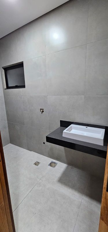 Casa térrea à venda, em fase final de construção, totalmente funcional, com 144 m² de construção, distribuídos em 3 quartos suítes, escritório, living com pé direito alto.