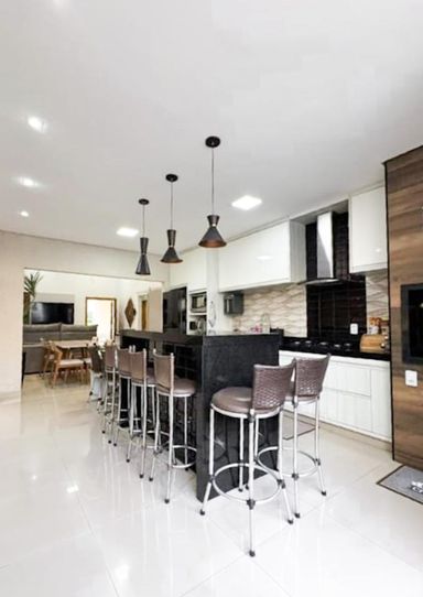 Casa térrea à venda, com 168 m² de construção, distribuídos em 3 quartos suítes, sala ampla com pé direito duplo e uma área gourmet aconchegante, bem equipada e integrada com espaçoso quintal e piscina.