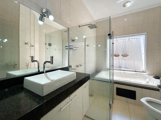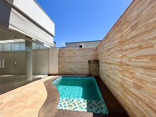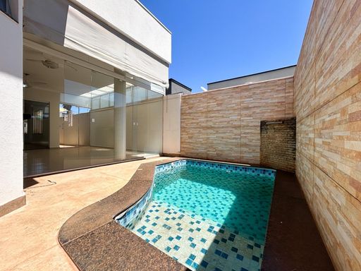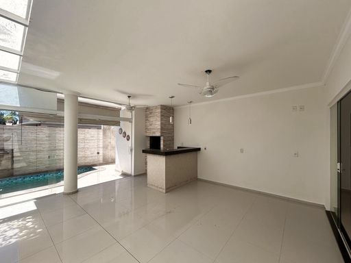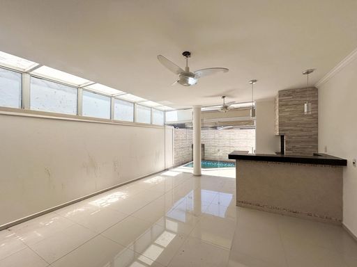 Casa térrea à venda totalmente funcional, com 210 m² de construção, distribuídos em 3 quartos suítes (1 com hidromassagem), escritório, cozinha interna, varanda gourmet integrada com área da piscina.