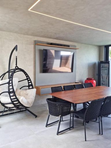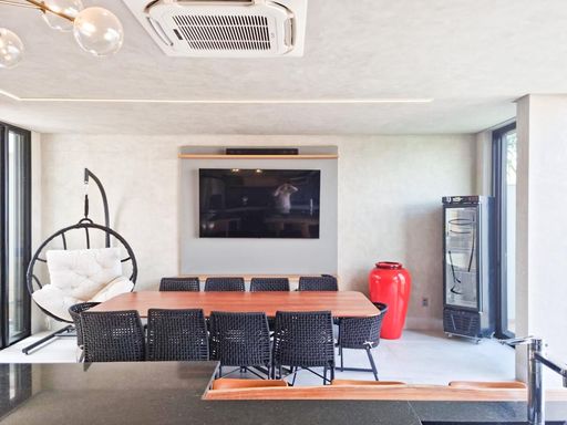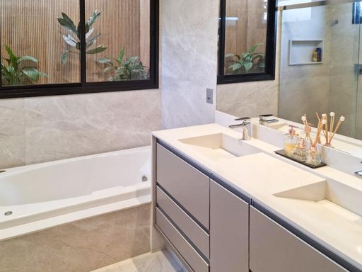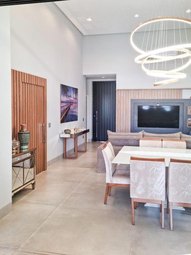 Casa térrea à venda totalmente funcional, com 220 m² de construção, distribuídos em 3 quartos suítes, sendo 1 master com closet e banheira, cozinha gourmet equipada, com churrasqueira, coifa, cooktop e rica em armários, casa rica em iluminação, sistema de aquecimento solar, lavabo, lavanderia, paisagismo e piscina aquecida.