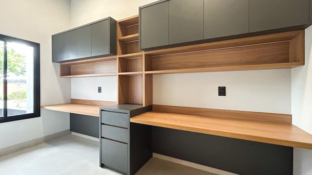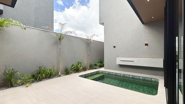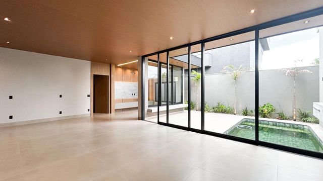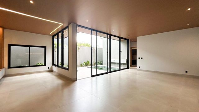 Casa térrea à venda totalmente funcional, com 230 m² de construção, distribuídos em 3 quartos suítes, escritório, living com pé direito alto e área gourmet integrada com área da piscina.