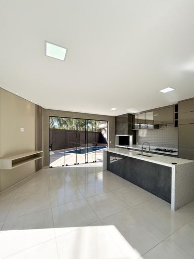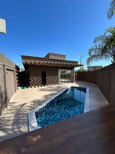 Casa térrea à venda totalmente funcional, com 240 m² de construção, distribuídos em 3 quartos suítes, escritório e área gourmet integrada com área da piscina.