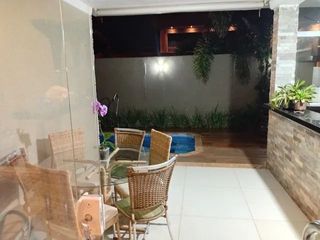 Casa térrea à venda totalmente funcional, com 251 m² de construção, distribuídos em 3 quartos suítes, living com pé direito alto, cozinha interna e área gourmet integrada com área da piscina.