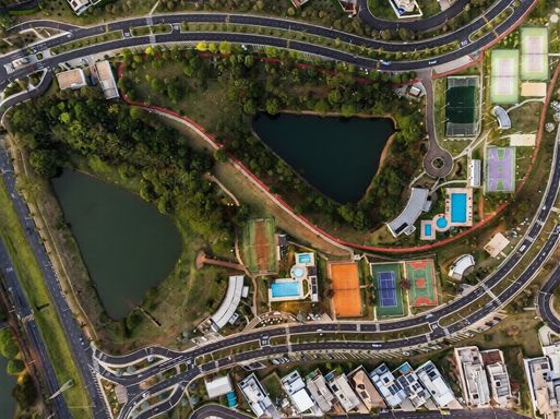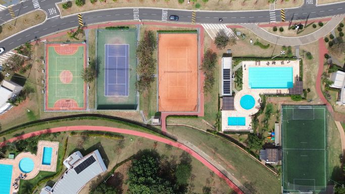 O condomínio conta com uma completa área de lazer e esportes, composta por academia, piscinas adulto e infantil, salão de festas, vestiários, quadra poliesportiva, campo de futebol, quadras de tênis e beach tennis, quadra de areia, playground, quiosque com churrasqueira, minimercado, e um lindo lago com deck de madeira. Espaços harmoniosos e agradáveis, riquíssimos em áreas verdes, um equilíbrio perfeito entre o design urbano e a preservação da natureza.