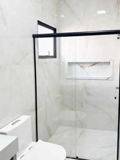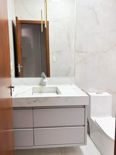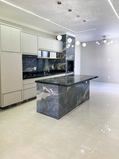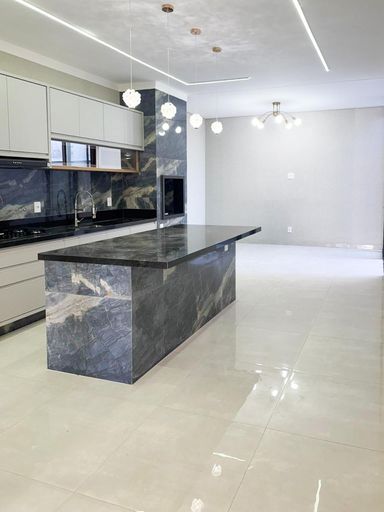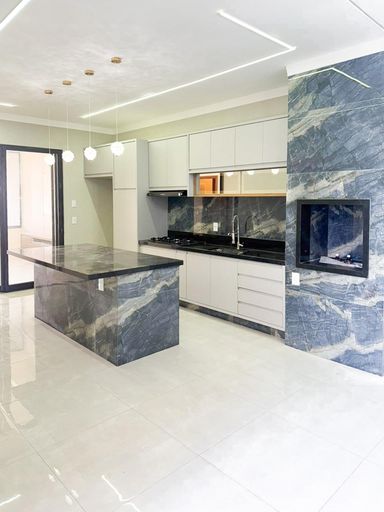 Casa térrea à venda, com 134 m² de construção, distribuídos em 3 quartos suítes, escritório, home, sala ampla com pé direito duplo e uma área gourmet aconchegante e bem equipada.