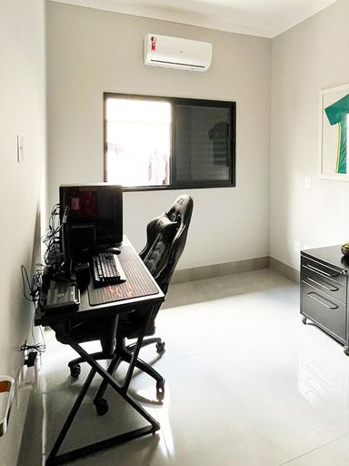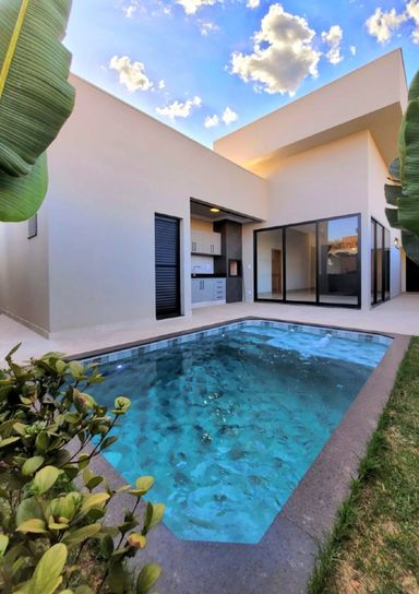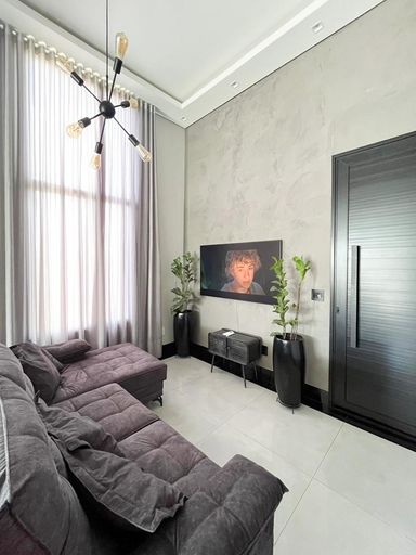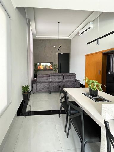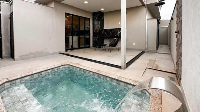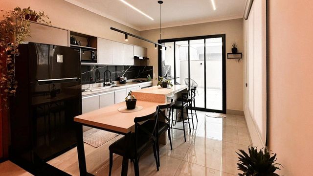 Casa térrea à venda, com 3 quartos suítes, escritório, home, sala ampla e uma área gourmet aconchegante, bem equipada e integrada com espaçoso quintal e área da piscina.
