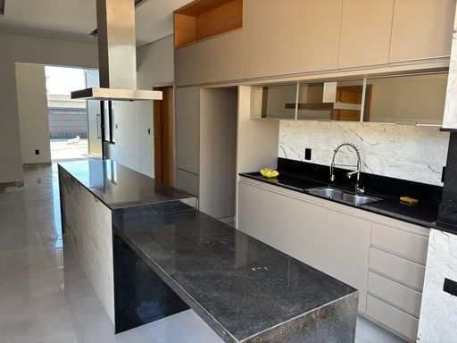 Casa térrea à venda, com 150 m², distribuídos em 3 quartos, sendo 1 suíte master com clouset e hidromassagem, escritório, home, sala ampla com pé direito duplo e uma área gourmet aconchegante, bem equipada e integrada com área da piscina.