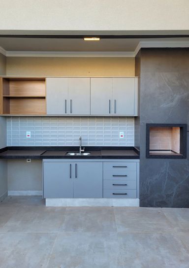 Churrasqueira externa integrada com área da piscina e área gourmet