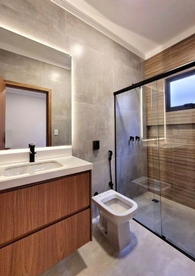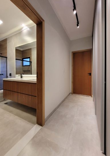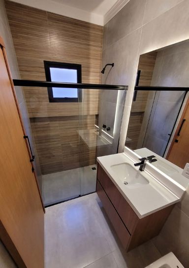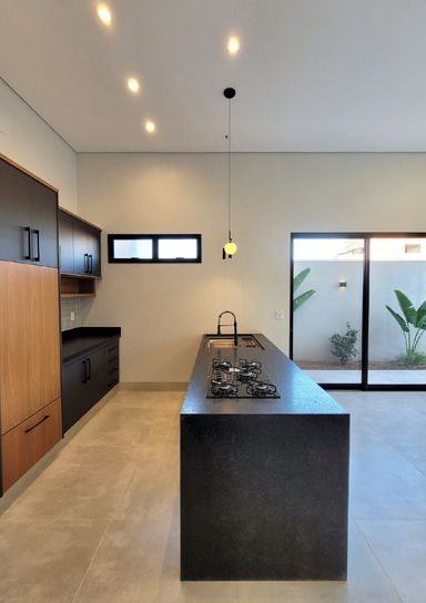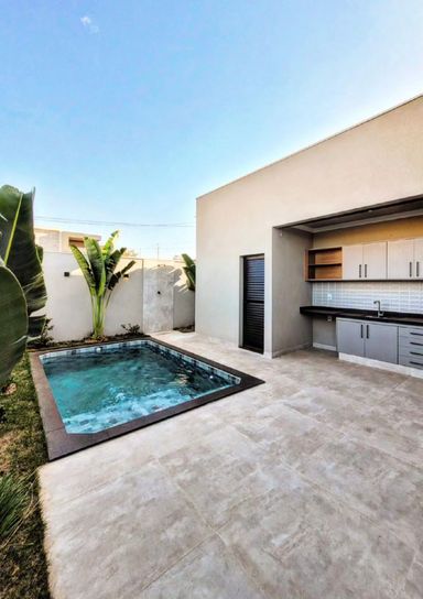 Casa térrea à venda, com 165 m², distribuídos em 3 quartos suítes, escritório, home, sala ampla com pé direito duplo e uma área gourmet aconchegante, bem equipada e integrada com espaçoso quintal, área verde e piscina.