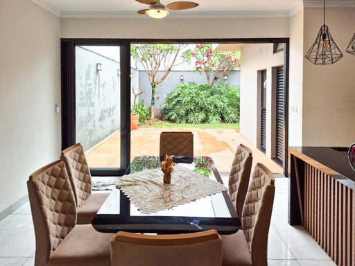 No condomínio Quinta do Lago I, esta casa térrea tem 170 m², distribuídos em 3 quartos suítes, sala ampla e uma área gourmet aconchegante, bem equipada e integrada com espaçoso quintal com área verde.