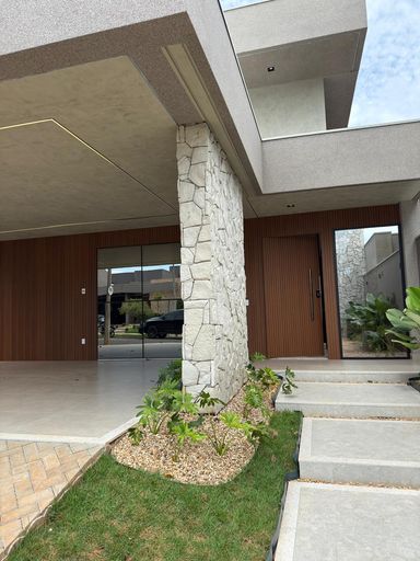 No condomínio Quinta do Lago I Blue Lagoon, esta casa térrea tem X m², distribuídos em X quartos suítes, escritório, home, sala ampla com pé direito duplo e uma área gourmet aconchegante, bem equipada e integrada com espaçoso quintal, área verde e piscina.