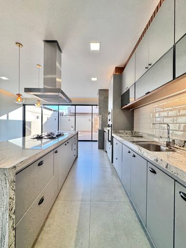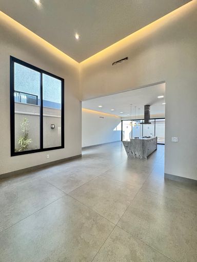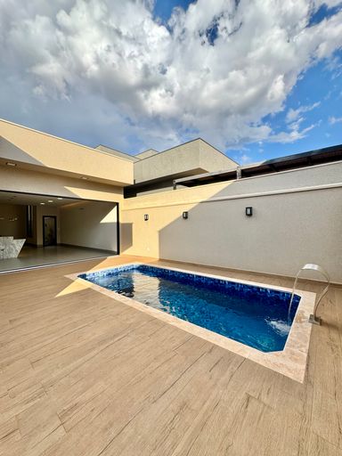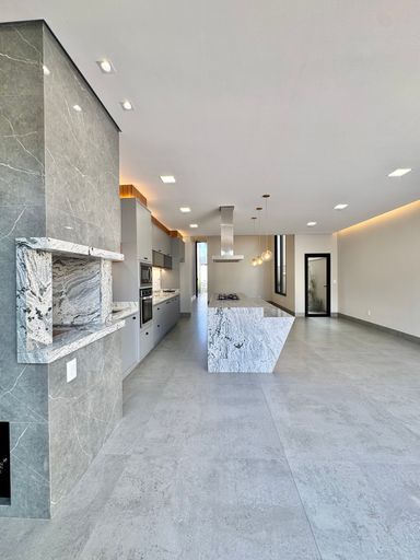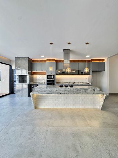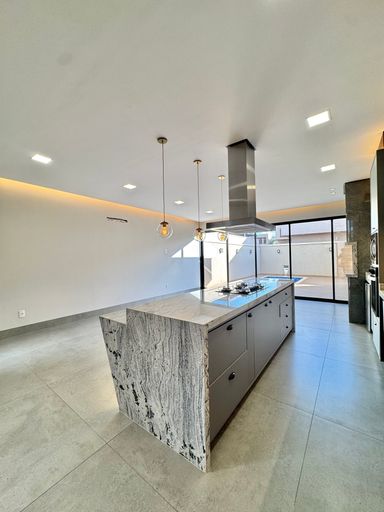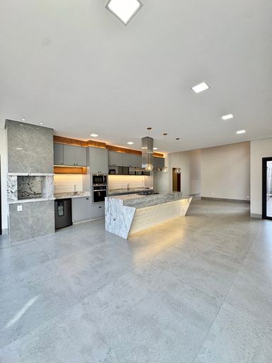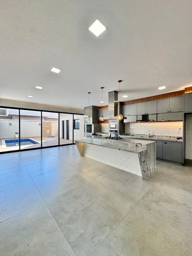 No condomínio Quinta do Lago I, esta casa térrea tem 215 m², distribuídos em 3 quartos suítes, escritório, home, sala ampla com pé direito duplo e uma área gourmet aconchegante, bem equipada e integrada com espaçoso quintal e área da piscina.