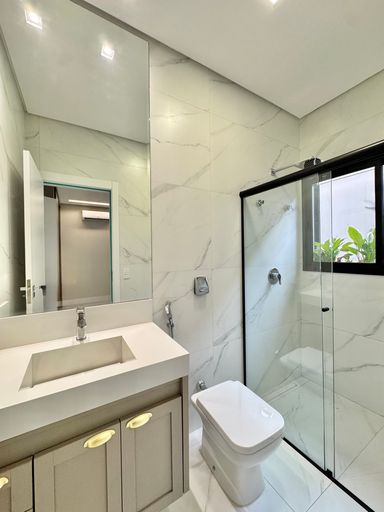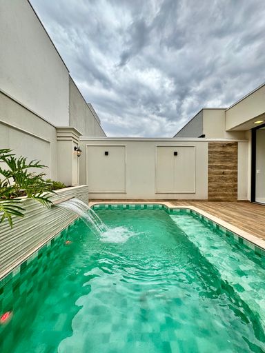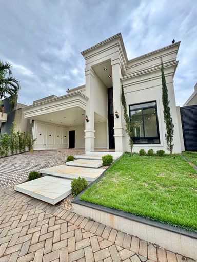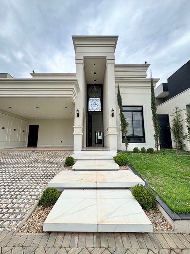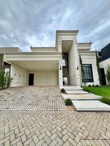 Casa térrea à venda, com 220m², distribuídos em 3 quartos suítes, escritório, lavabo, toda climatizada, estilo neoclássico, vizinhos definidos e sem vizinho de frente, venha conhecer, segurança e conforto em condomínio fechado.