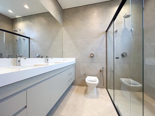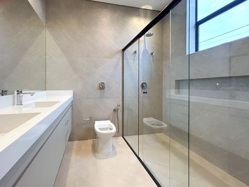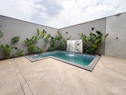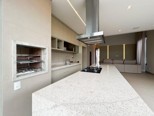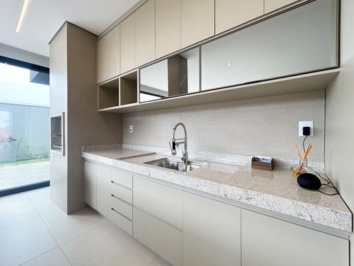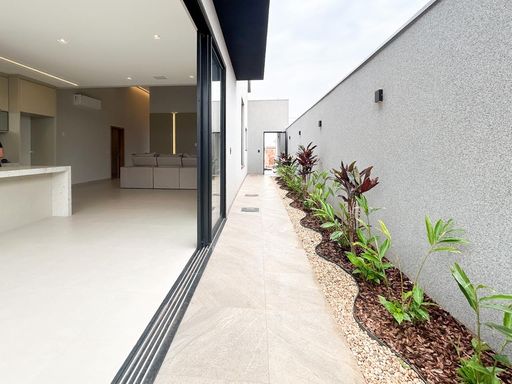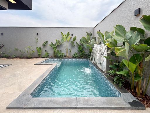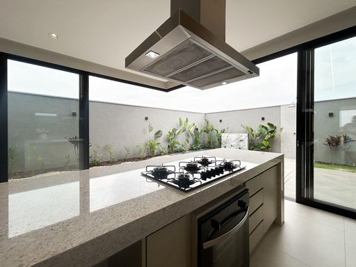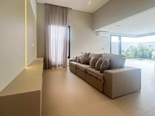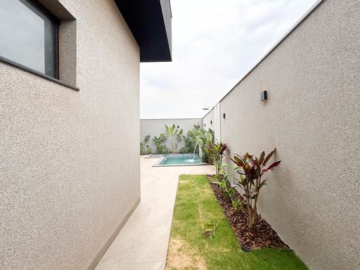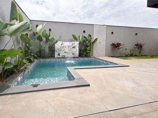 Casa térrea à venda, com 187,11m² de contrução, distribuídos em 3 quartos suítes (1 master com closet), escritório, sala ampla, climatização completa e integrada, fechadura digital, automação com Alexa integrada, som ambiente com caixas JBL da linha Stage, energia fotovoltaica 500Kwh, expansível até 800Kwh, ponto para carro elétrico, lavanderia/ despensa, área gourmet completa, paisagismo e piscina com cascata e hidromassagem.