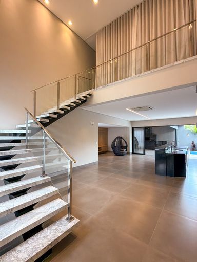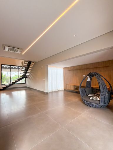 Casa assobradada à venda, com 320 m², distribuídos em 3 quartos suítes, escritório, home, sala ampla com pé direito duplo e uma área gourmet aconchegante, bem equipada e integrada com espaçoso quintal, áreA verde e piscina.