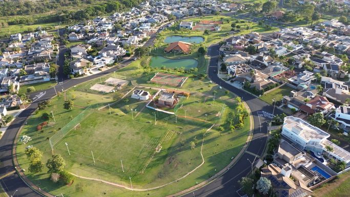Nas áreas comuns do condomínio, estão disponíveis para uso dos moradores: academia, biblioteca, playground, campo de futebol, quadra de tênis, quadra poliesportiva, quiosque, salão de festas, minimercado, um lago e amplas áreas verdes.