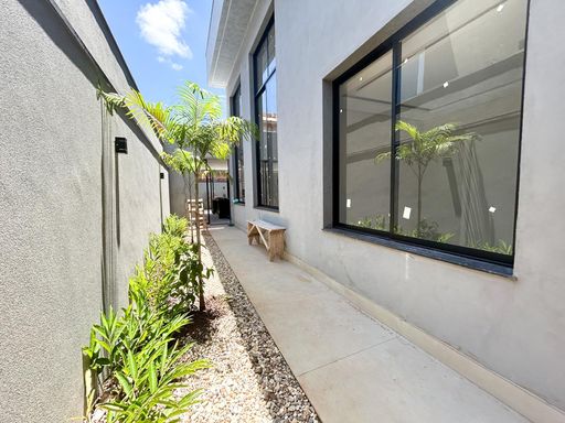 Casa térrea à venda, com 230 m², distribuídos em 3 quartos suítes, escritório, home, sala ampla com pé direito duplo e uma área gourmet aconchegante, bem equipada e integrada com espaçoso quintal e área da piscina.