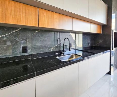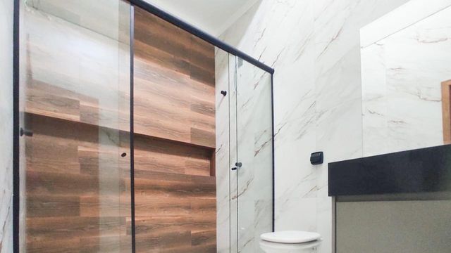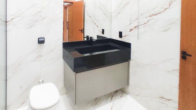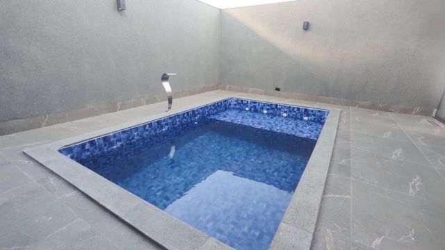 Casa térrea à venda, com 154 m², distribuídos em 3 quartos suítes, escritório, home, sala ampla com pé direito duplo e uma área gourmet aconchegante, bem equipada e integrada com espaçoso quintal e área da piscina.