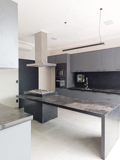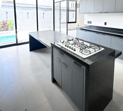 Cozinha Gourmet completa com forno Micro-ondas e coifa instalada, Cooktop, Forno elétrico