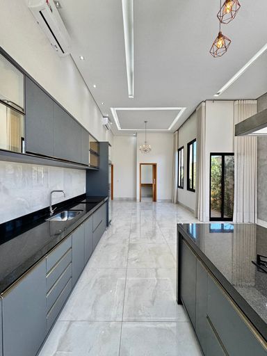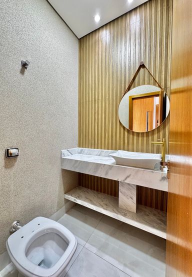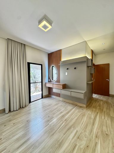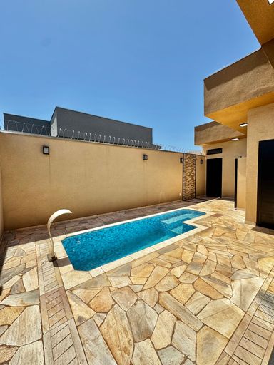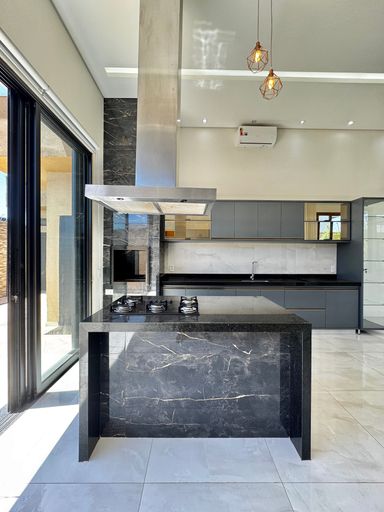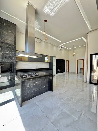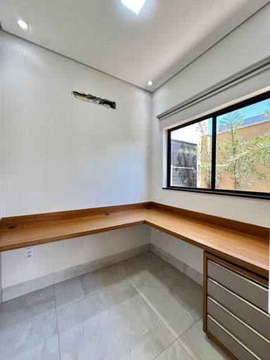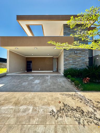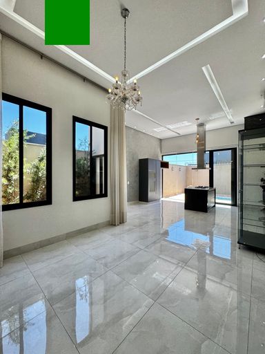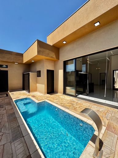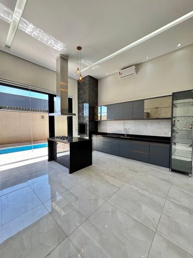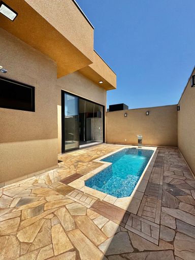 Casa térrea à venda, com 157,74 m², distribuídos em 3 quartos suítes, escritório, sala ampla com pé direito duplo e uma área gourmet aconchegante, bem equipada e integrada com o espaço da piscina.