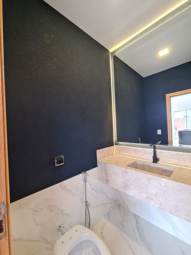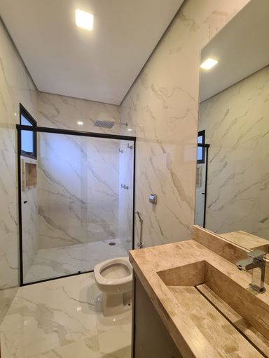 3 suítes, sendo 1 suíte com closet, cubas e chuveiros duplos