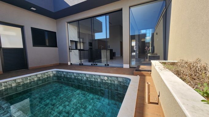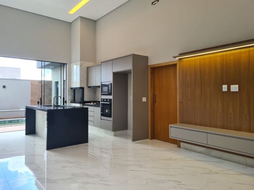 Casa térrea à venda, com 169 m², distribuídos em 3 quartos suítes, escritório, home, sala ampla com pé direito duplo e uma área gourmet aconchegante, bem equipada e integrada com espaçoso quintal, área da piscina.