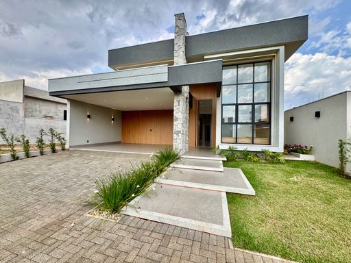 Casa térrea à venda, com 235 m², distribuídos em 3 quartos suítes, escritório, home, sala ampla com pé direito duplo e uma área gourmet aconchegante, bem equipada e integrada com espaçoso quintal e área da piscina.