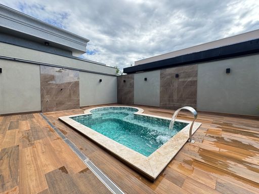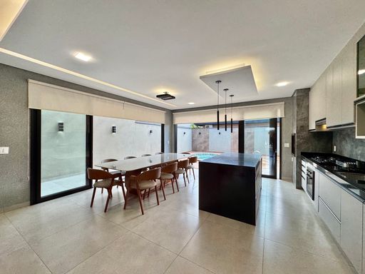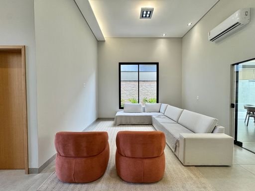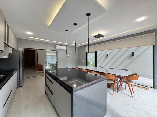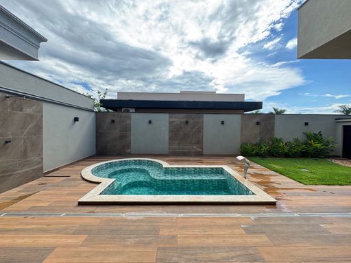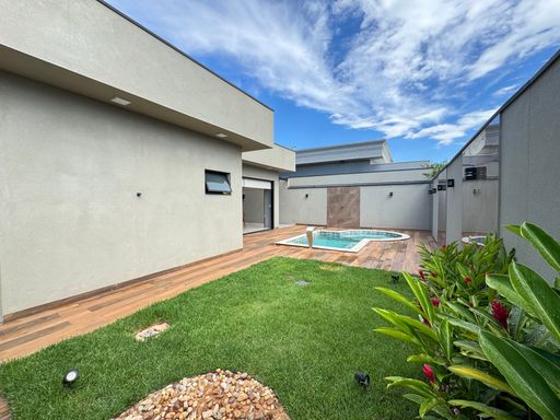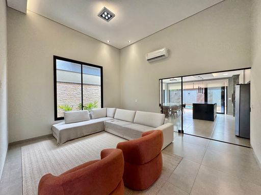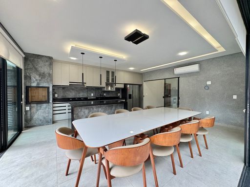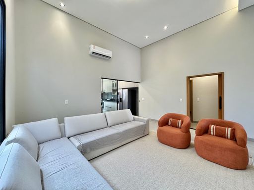 Casa térrea à venda no Terra Vista, com 200 m², distribuídos em 3 quartos suítes, escritório, home, sala ampla com pé direito duplo e uma área gourmet aconchegante, bem equipada e integrada com espaçoso quintal, área verde e piscina.