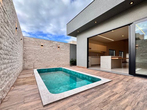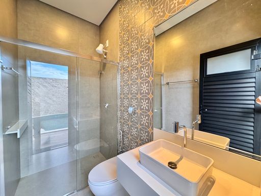 Casa térrea à venda no Terra Vista, com 232 m², distribuídos em 3 quartos suítes, sala ampla com pé direito duplo e uma área gourmet aconchegante, bem equipada e integrada com espaçoso quintal, área da piscina.