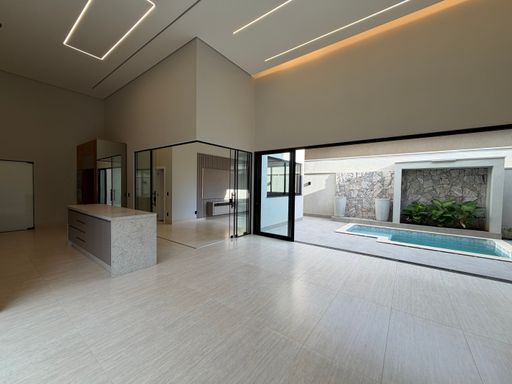 Casa térrea à venda, com 235 m², distribuídos em 3 quartos suítes, escritório, home, sala ampla com pé direito duplo e uma área gourmet aconchegante, bem equipada e integrada com espaçoso quintal e área da piscina.