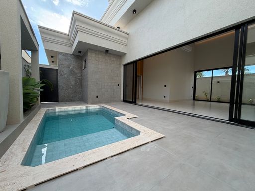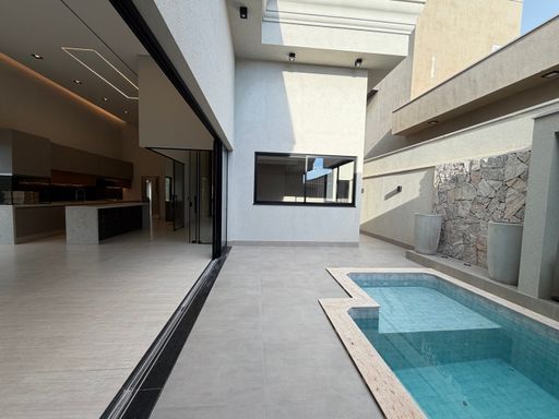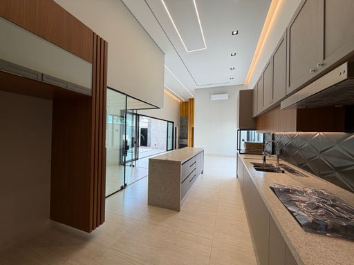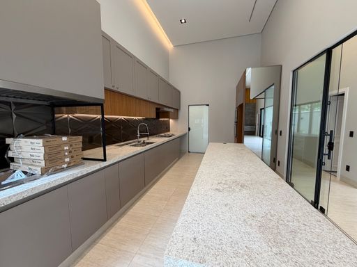 Casa térrea à venda no Terra Vista, com 227 m², distribuídos em 3 quartos suítes, escritório, home, sala ampla com pé direito duplo e uma área gourmet aconchegante, bem equipada e integrada com espaçoso quintal, área da piscina.