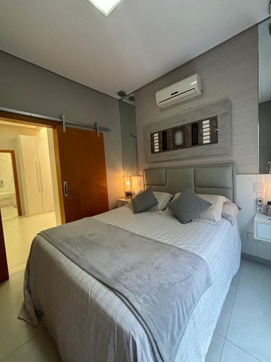 condomínio já consolidado, moderno, planejado, com ruas largas e arborizadas.