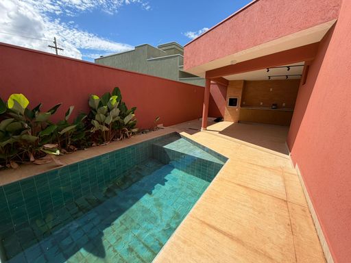 Casa térrea à venda, com 180 m², distribuídos em 3 quartos, sendo 1 suíte, sala ampla e uma varanda gourmet aconchegante, bem equipada e integrada com espaçoso quintal, área verde e piscina.