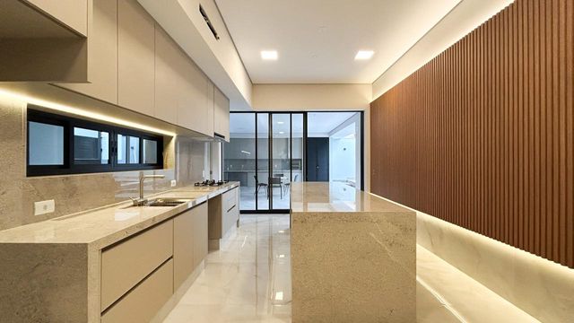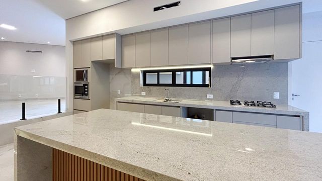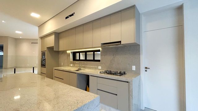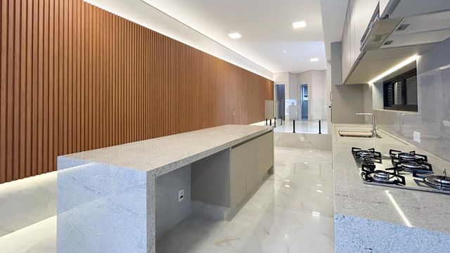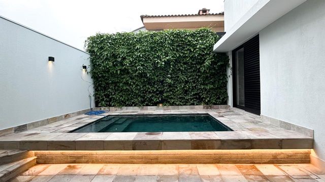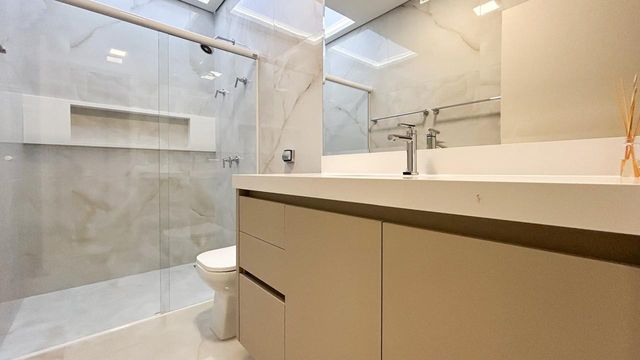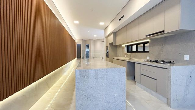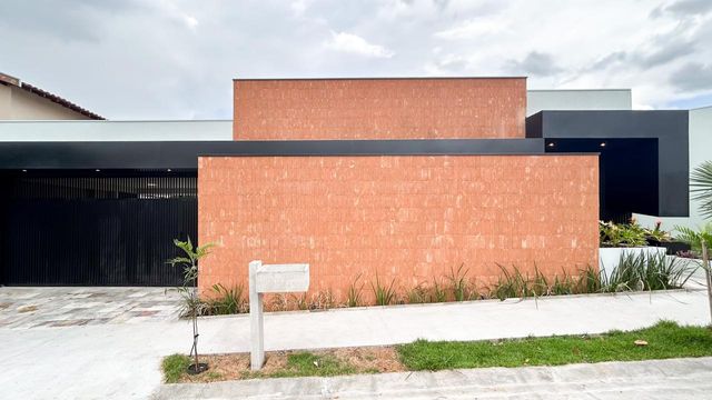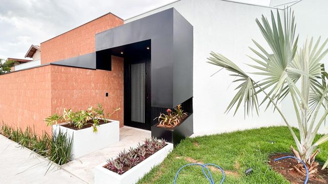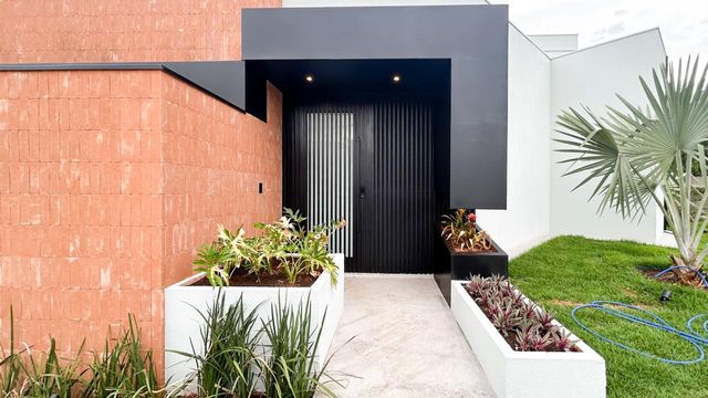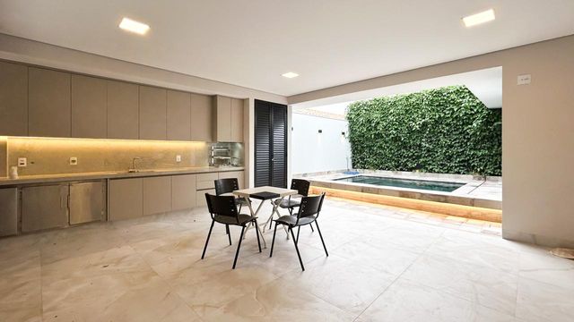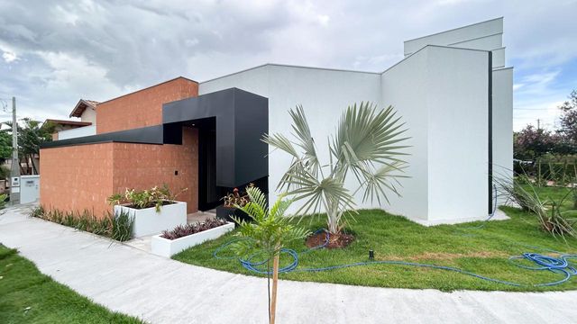 Casa térrea à venda, com 190 m², distribuídos em 3 quartos suítes, escritório, home, sala ampla com pé direito alto e uma área gourmet aconchegante, bem equipada e integrada com espaçoso quintal, área verde e piscina.