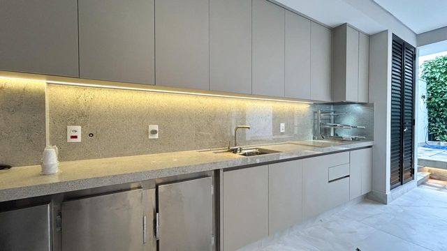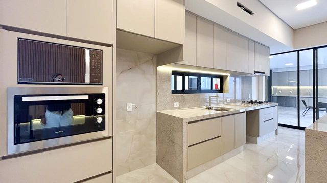 Cozinha gourmet com armários planejado fogão cooktop, microondas, forno elétrico