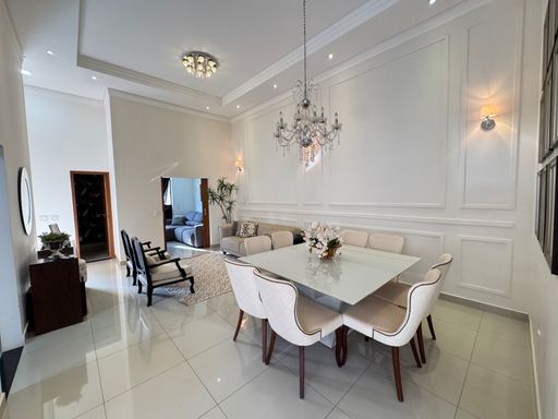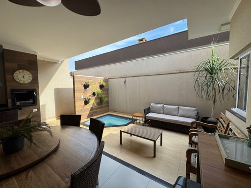 Perfeita para quem busca praticidade, esta casa térrea, de 3 quartos suítes, tem uma espaçosa e aconchegante área gourmet, piscina aquecida, home, lavabo e sala integrada.