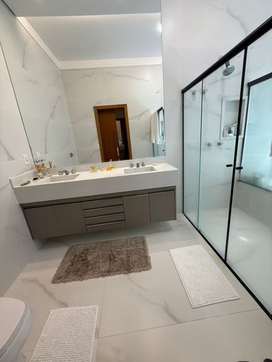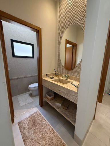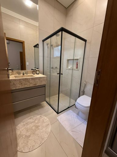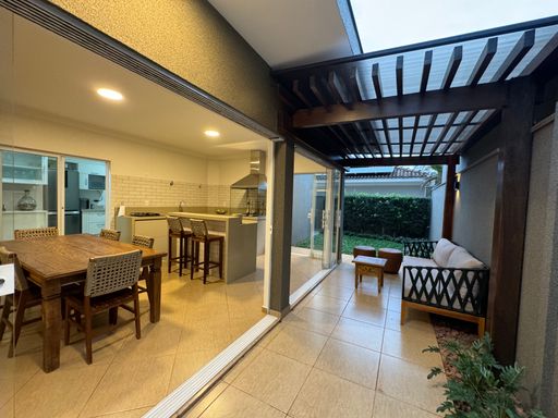 Perfeita para quem busca praticidade, esta casa térrea, de 3 quartos suítes (1 master com closet amplo e banheira), sala para 2 ambientes, cozinha interna, uma aconchegante área gourmet com som ambiente, lavabo, aspiração de pó embutido, escritório, armários planejados, área de serviço a 30mts da área de lazer e quintal amplo.