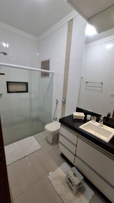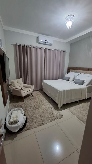 Casa térrea à venda, sendo 03 dormitórios todos suítes, sala ampla para 2 ambientes, cozinha separada da área Gourmet, cooktop na cozinha e na área gourmet, churrasqueira área Gourmet, lavabo, escritório, rica em armários. Energia fotovoltaica e Ar-condicionado em todos os ambientes.