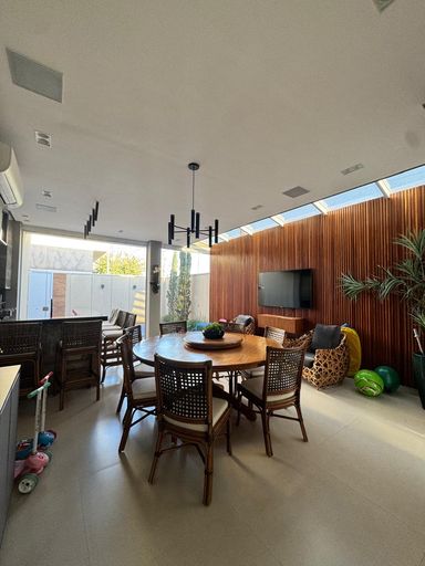 Perfeita para quem busca praticidade, esta casa térrea, de 3 quartos suítes, tem uma espaçosa e aconchegante área gourmet, quintal amplo, piscina aquecida, escritório e sala integrada.