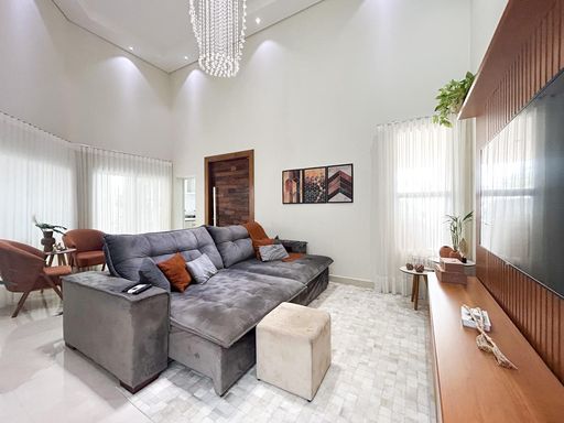 Casa térrea à venda totalmente funcional, com 191,99 m² de construção, distribuídos em 3 quartos suítes, escritório, living com pé direito alto, área gourmet churrasqueira, coifa, cooktop, espaço integrado com área da piscina.