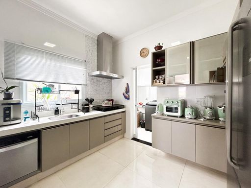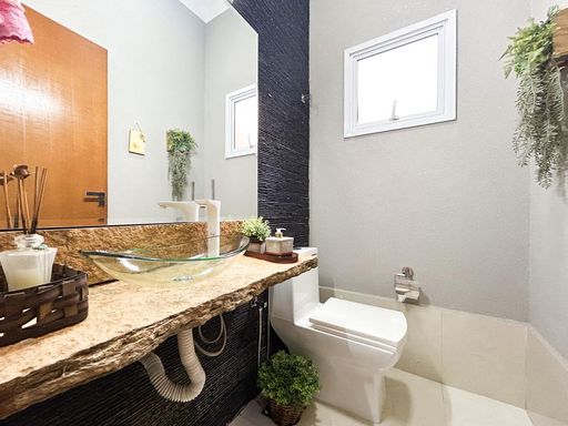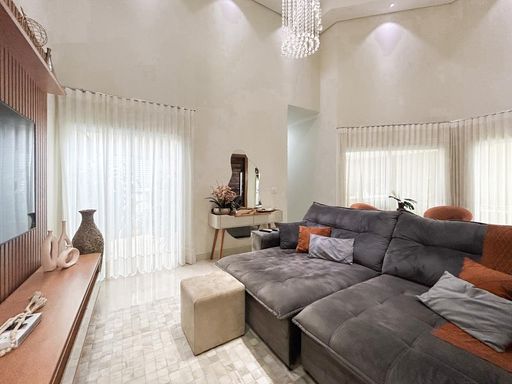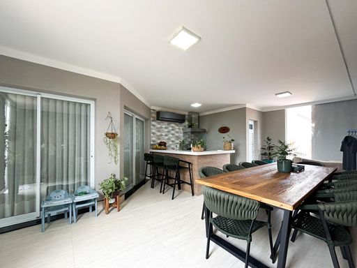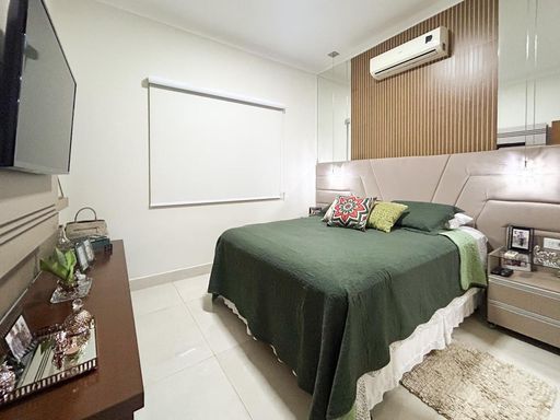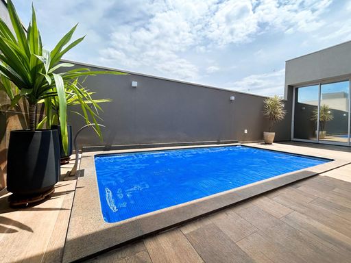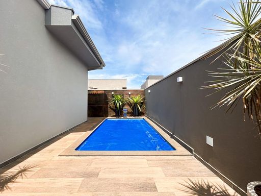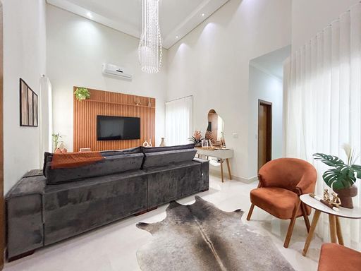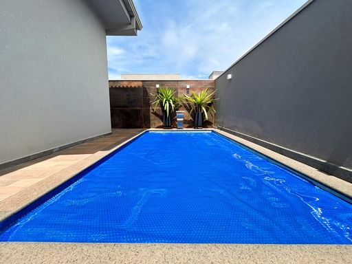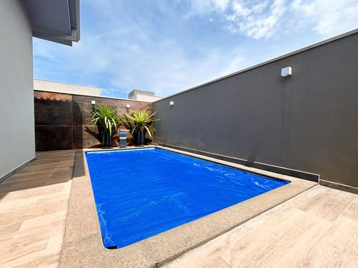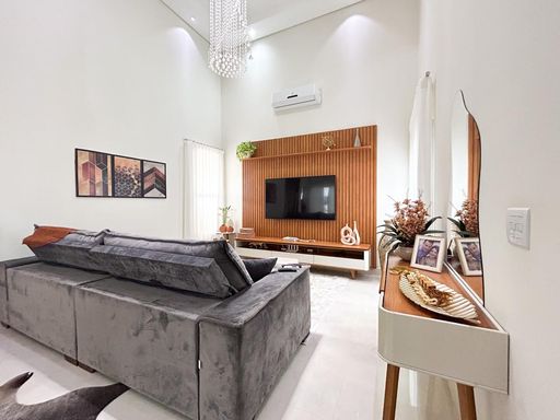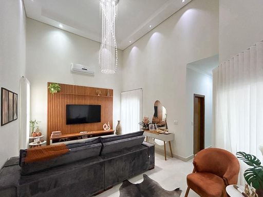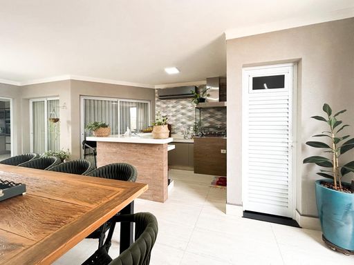 Casa térrea à venda, com 230m² de construção, distribuídos em 3 quartos suítes (1 com closet), rica em armários embutidos e painéis, casa toda climatizada. energia fotovoltaica, sala, área de luz, despensa, área de serviço, cozinha interna planejada, e uma varanda gourmet com churrasqueira, aconchegante, bem equipada e integrada com quintal e piscina aquecida.