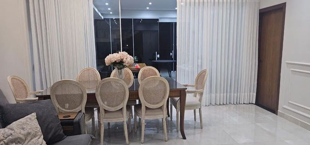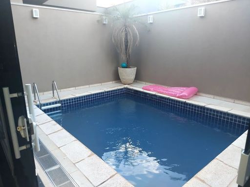 Sobrado à venda totalmente arejado e funcional, com 300 m² de construção, distribuídos em 3 quartos suítes, escritório, sala ampla com pé direito alto, área gourmet integrada com área da piscina, cozinha interna com cooktop, coifa e cristaleira.