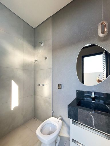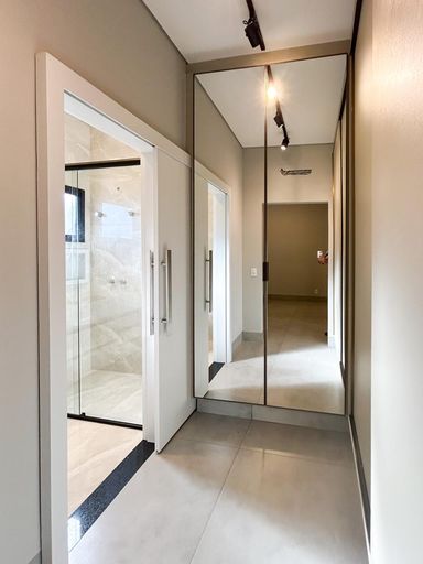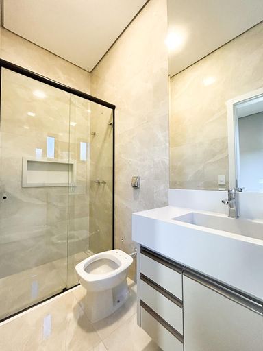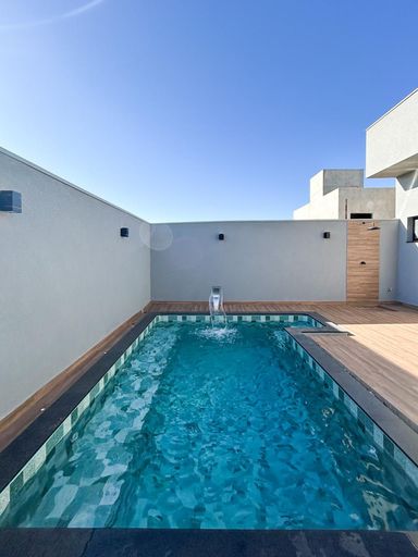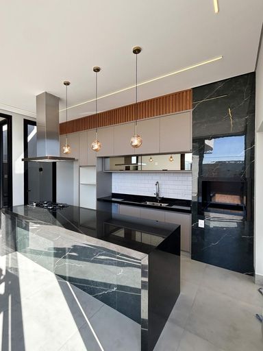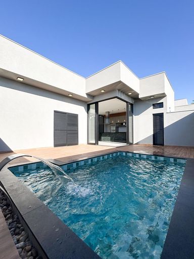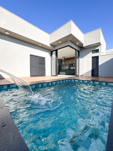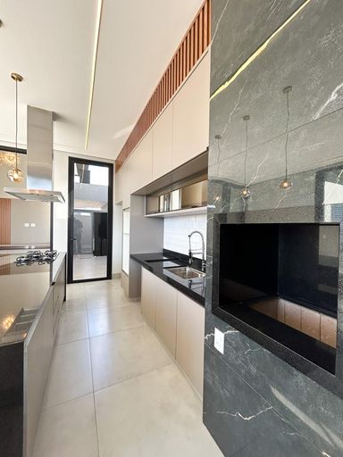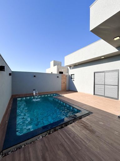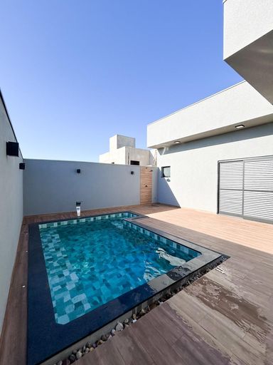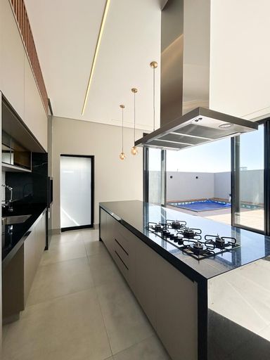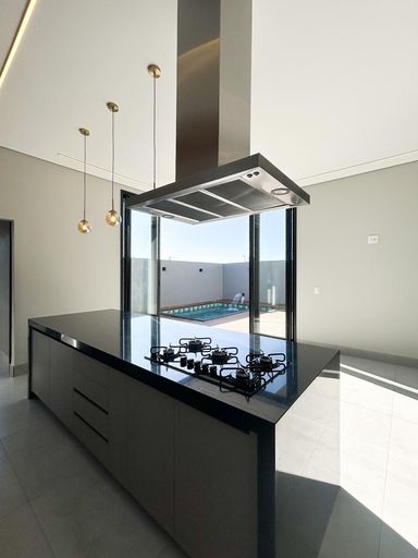 Casa térrea à venda totalmente funcional, com 163 m² de construção, distribuídos em 3 quartos suítes, escritório, living com pé direito alto, cozinha interna com cooktop, coifa, área gourmet integrada com área da piscina.